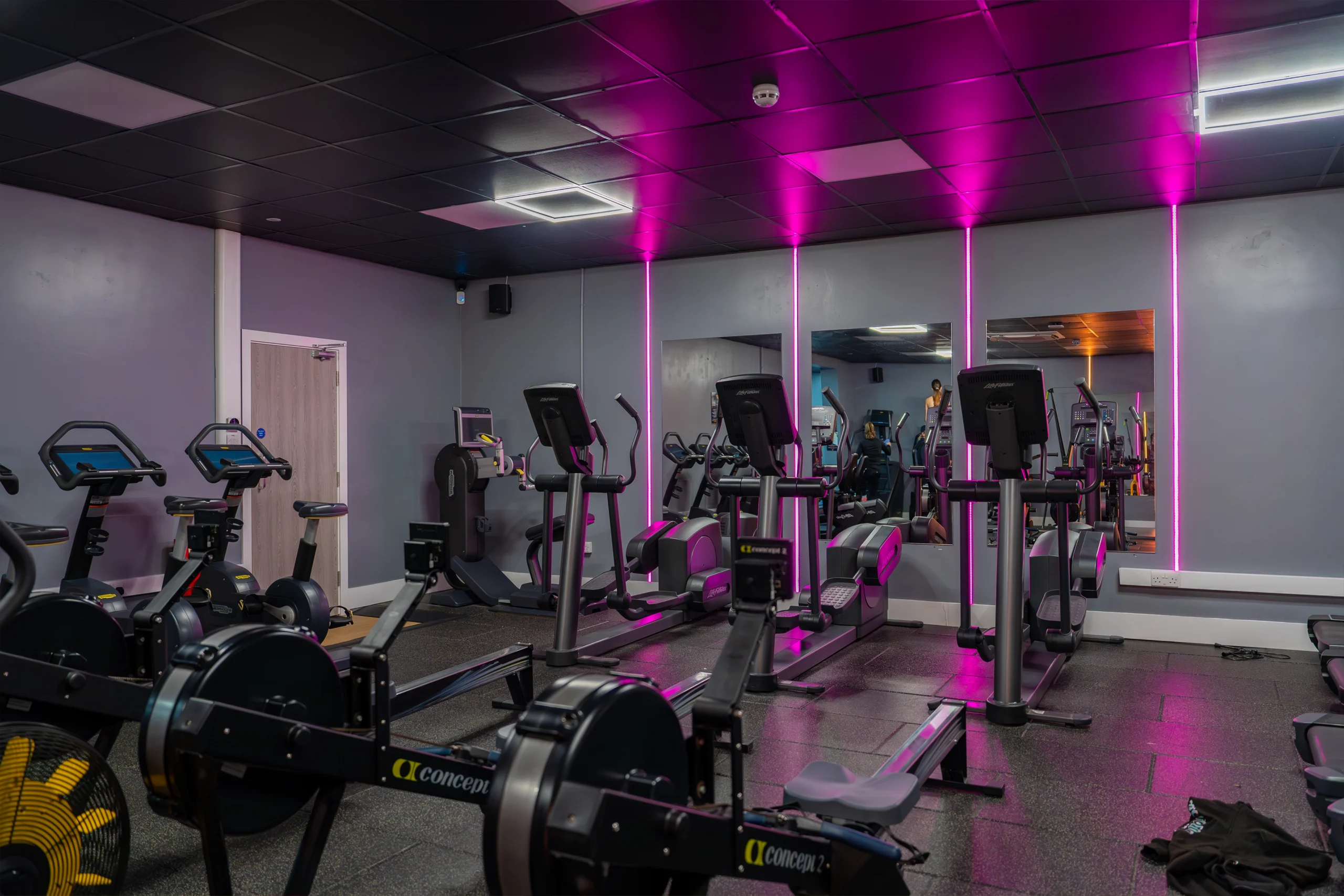 Free weights – Dumbbells range from 1kg – 55kg and fixed barbells 5kg – 45kg.